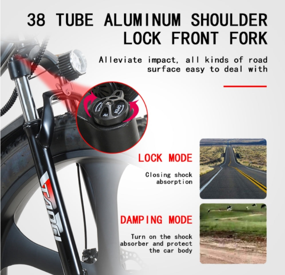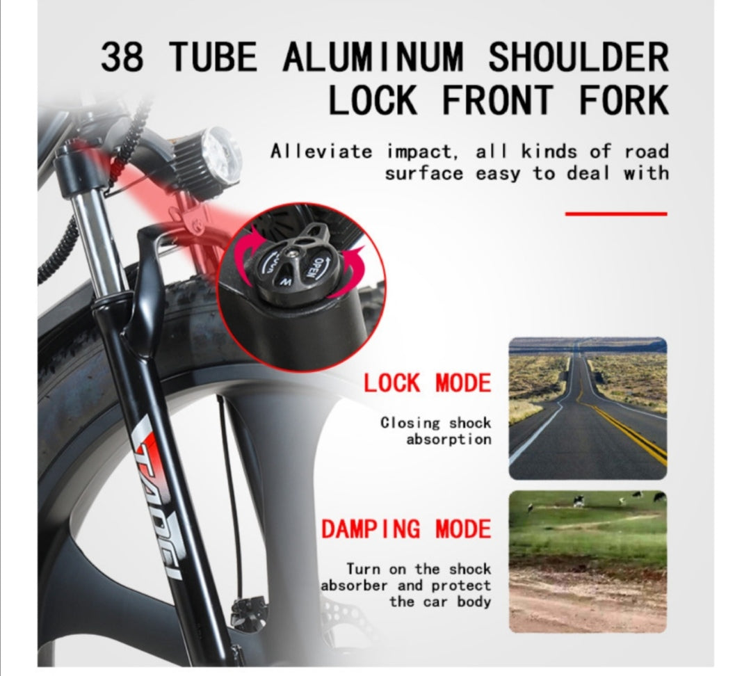 Want to go off-road but also want an e-bike that is a little more sporty than your regular e-mountain bike? The TAOCI Python Sport E-Mountain Bike could be the right choice for you. With its 5-spoke magnesium alloy wheels and 21 Speed Shimano gears this e-bike shifts faster when you need it most. But yet, you also have the powerful 1000w motor behind it all to give you an extra boost on top of all that. This really is a unique-looking e-bike that is sure to turn heads no matter where you ride.